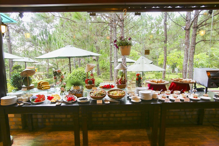 Khi chọn Nhà hàng SUN LIFE HILL là địa điểm ăn uống ngay Hồ Tuyền Lâm thì bạn sẽ được thoải mái lựa chọn nhiều món ăn được đến từ ẩm thực đa quốc gia. Với mong muốn mang lại cho thực khách một món ăn thơm ngon, hợp khẩu vị và tốt cho sức khỏe, nhà hàng luôn chú ý đến việc lựa chọn nguyên liệu tươi ngon, hảo hạng. Đa phần các nguyên liệu sẽ được lấy trực tiếp từ địa phương hoặc thu hoạch từ trong nông trại của khu nghỉ dưỡng nên luôn đảm bảo được chất lượng và độ an toàn cho thực khách. Bên cạnh đó, các đầu bếp của nhà hàng cũng được tuyển chọn và rèn luyện tay nghề thường xuyên. Với tay nghề chuyên nghiệp của các đầu bếp, chắc chắn sẽ làm cho bạn hài lòng và nhớ mãi hương vị của từn món ăn ở đây.